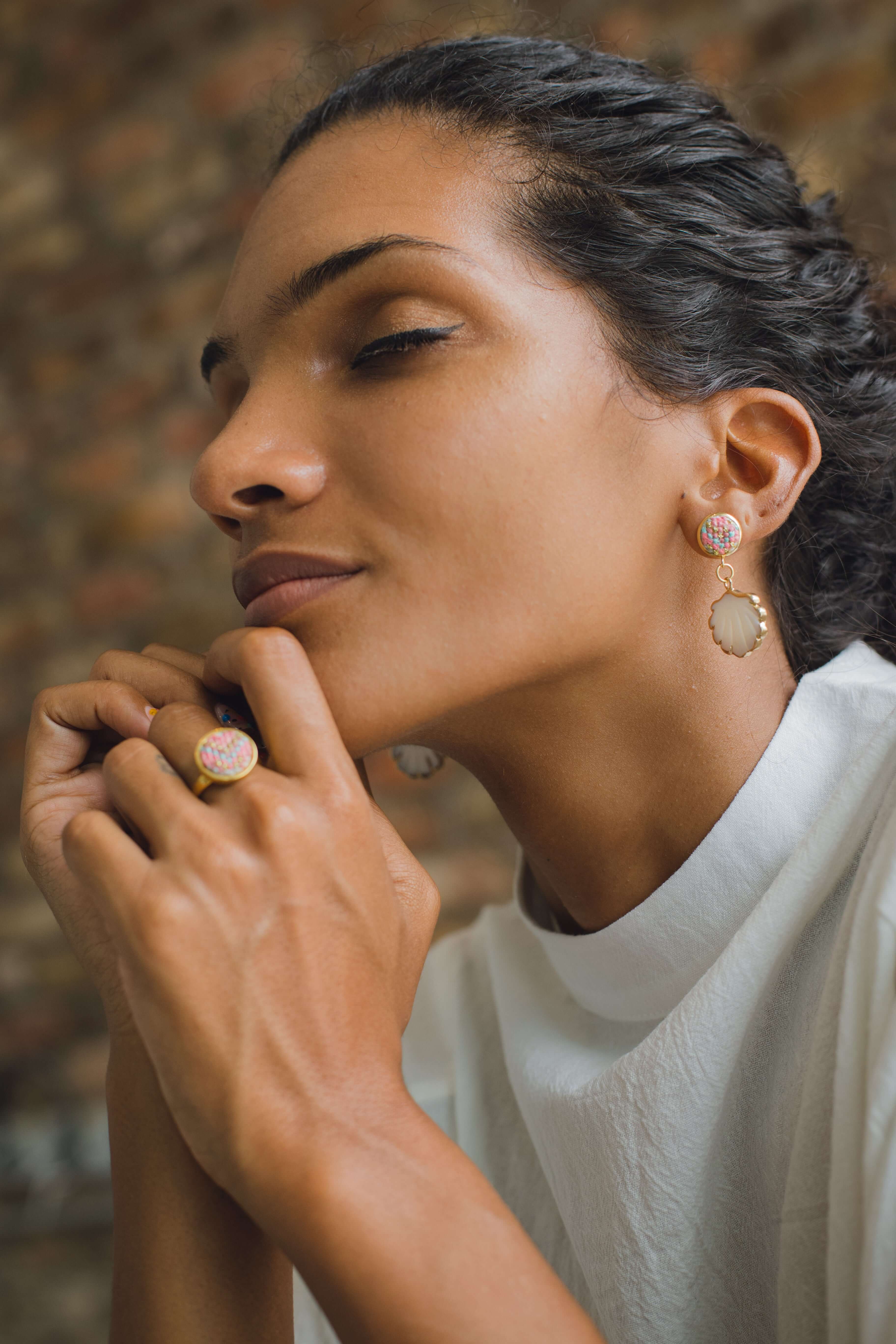 Each earring is made with an inlay of real seashells, each one unique, like you.